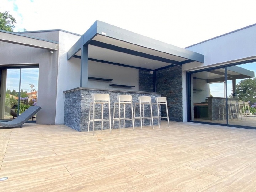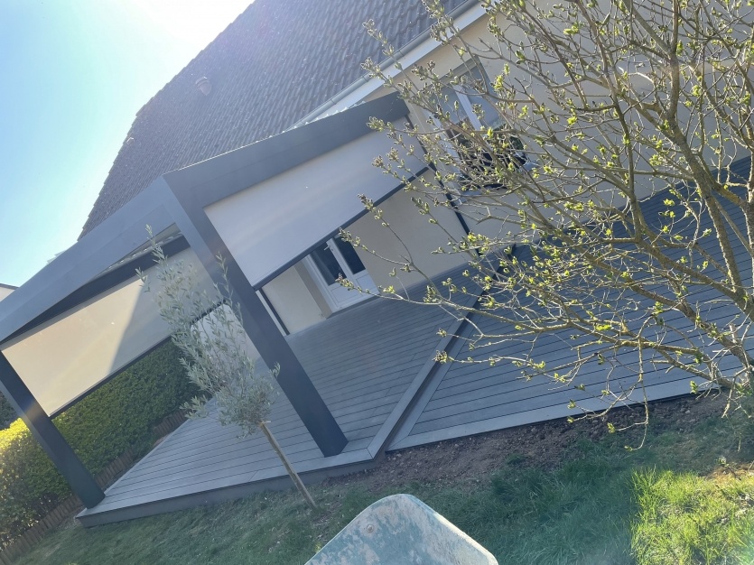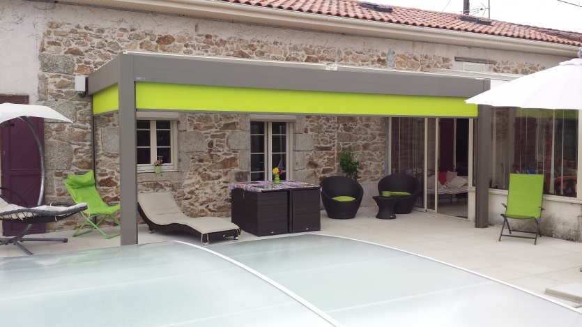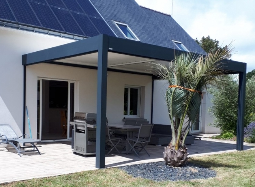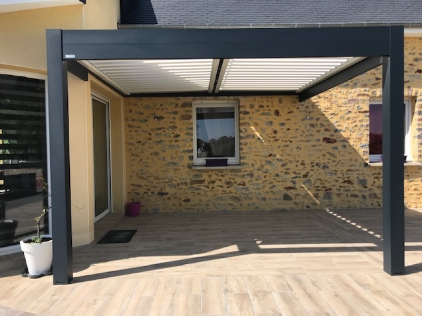 La pergola bioclimatique permet de couvrir votre terrasse sans obscursir votre maison.